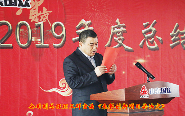 會上,公司常務副總經理崔新平宣讀了公司2019年度表彰決定;公司副總經理王群宣讀了關于表彰優秀創新項目的決定。