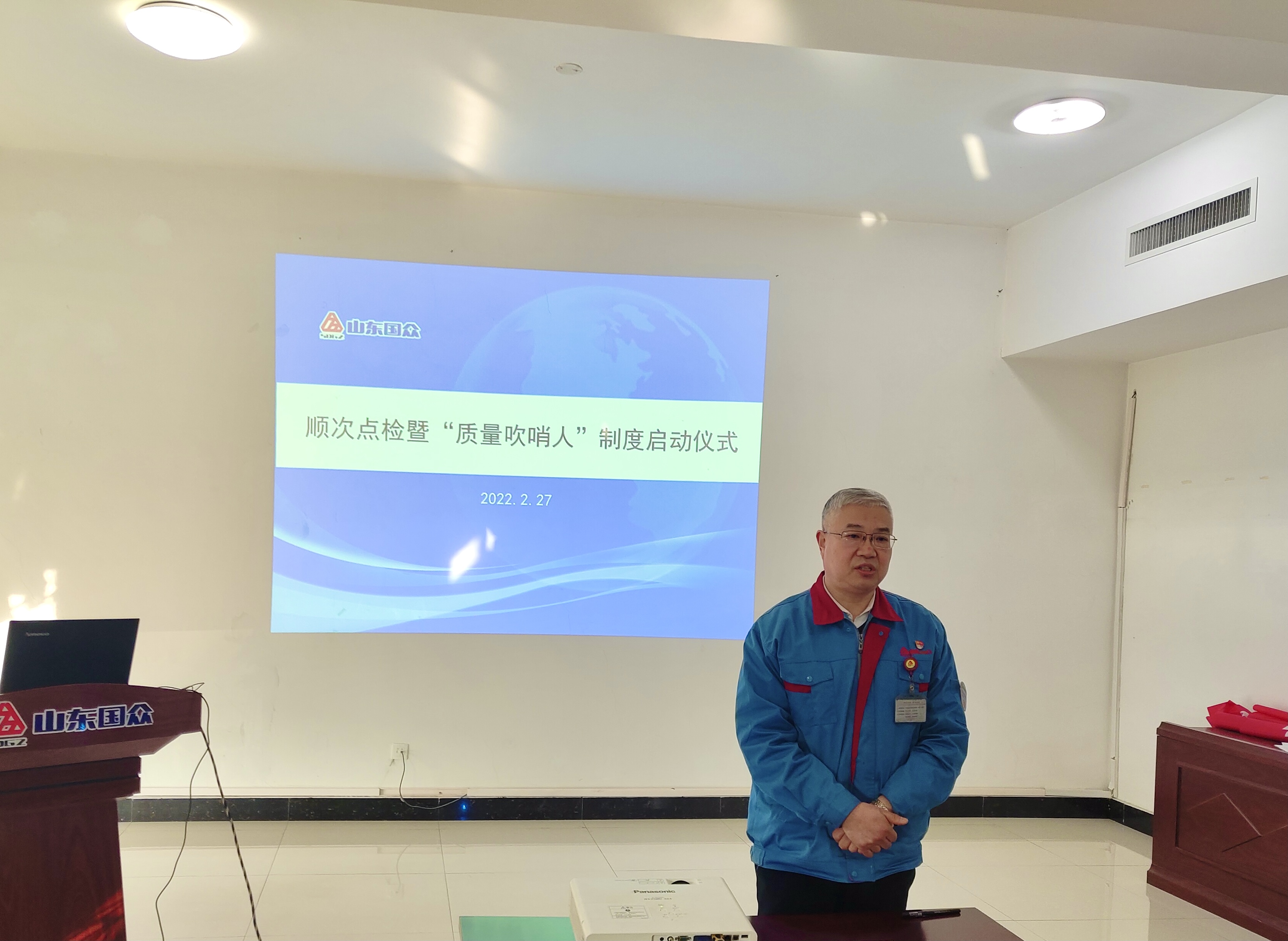 2022 年 2 月 27 日上午 9 時,公司召開工序順次點檢暨“質量吹哨人”質量制度啟動儀式。會議由謝文成總經理主持,公司領導及全體管理干部、質檢員及各分廠技術員參加。