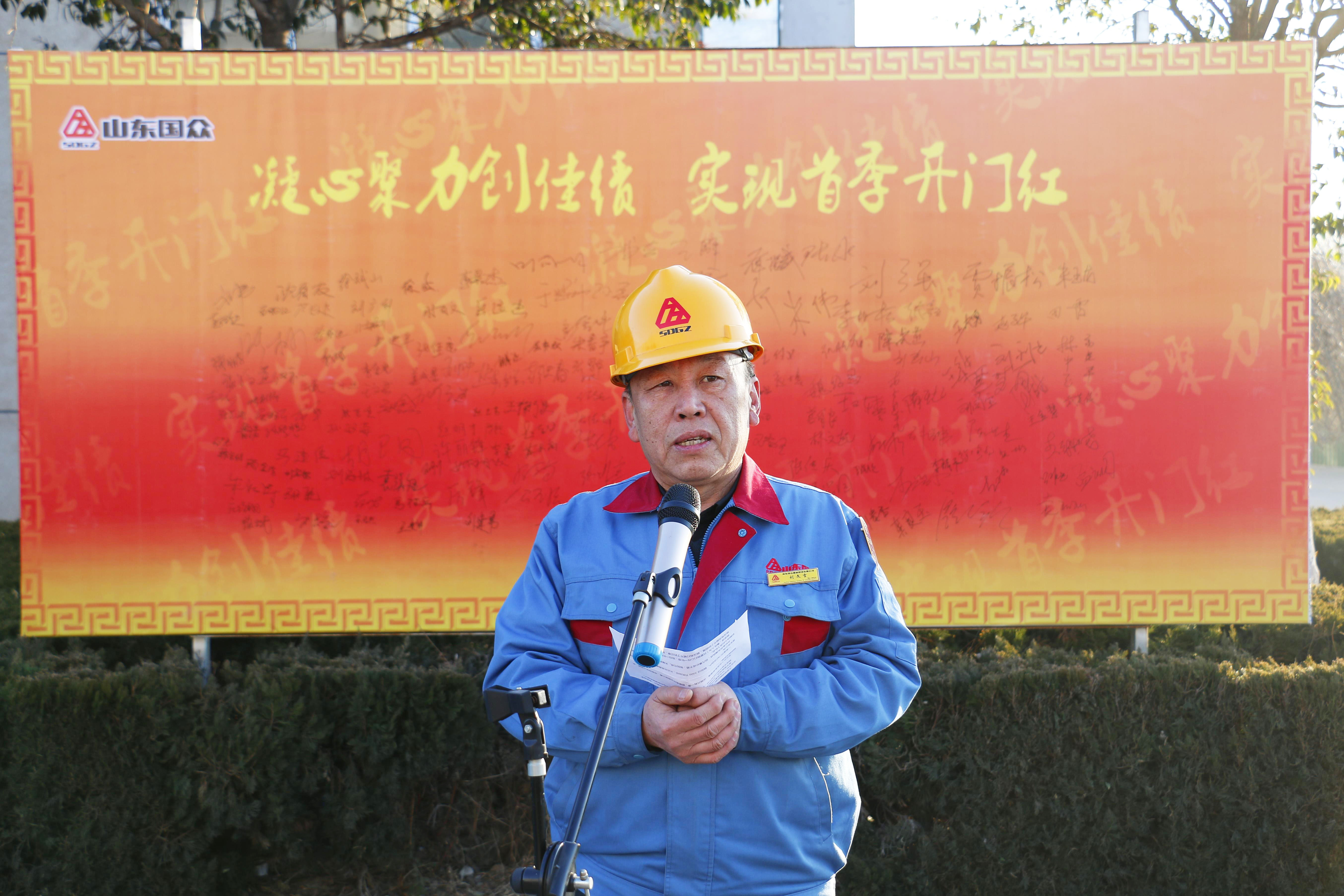 山東國眾機械科技有限公司于2025年2月9日早上,在7號車間門外隆重召開“一季度開門紅”銘志簽字儀式。公司領導以及全體員工參加本次活動,副總經理崔新平主持本次活動。