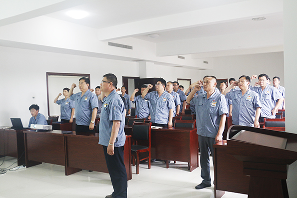會前,公司黨總支為進一步加強黨員的黨性修養,舉行了重溫入黨誓詞活動,公司全體黨員面對黨旗,鄭重宣誓,心靈得到了一次洗禮。他們紛紛表示,要自覺加強思想修養,堅定理想信念,牢記宗旨,為公司事業發展獻計獻策獻力獻禮。