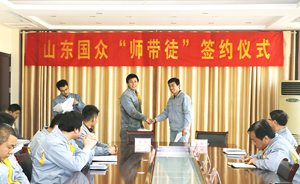 2017年3月14日,山東國眾機(jī)械科技有限公司隆重舉行“師帶徒”簽約儀式,公司總經(jīng)理謝文成、常務(wù)副總經(jīng)理劉文吉、崔新平等公司領(lǐng)導(dǎo)、公司各分部經(jīng)理及部分師傅與徒弟代表參加了儀式活動(dòng),劉文吉主持儀式。