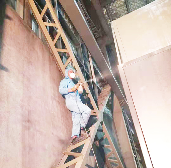 馬升明:公司此次蕭山安裝固化爐的焊接頂級高手之一。他攀爬高空作業,因加班加點疲勞過度,出現暈覺,多虧有安全帶,避免了安全事故的發生。但他不因此而膽怯,抖擻精神堅持作業……