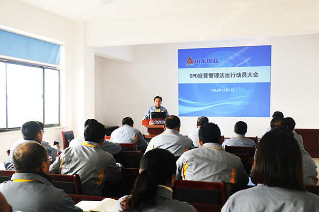 2016年12月1日上午,公司在一樓會議室組織召開了SPD經營管理試運行動員大會。公司總經理謝文成、常務副總劉文吉、崔新平、財務總監張美萍、黨總支副書記徐博、副總經理陸毅、鄭清河等公司領導及公司中層以上管理干部參加了會議,公司常務副總經理劉文吉主持了會議。